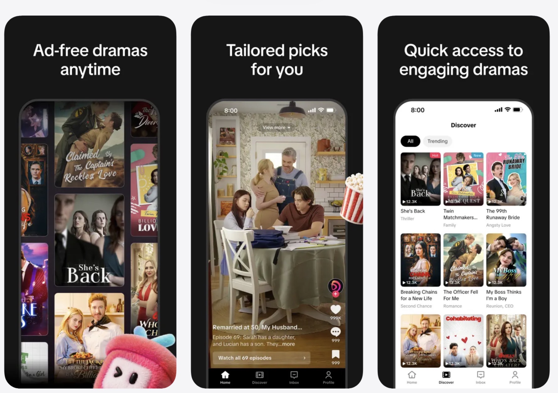 Para quienes se inician en la categoría, los microdramas son series cortas grabadas en vídeo vertical y disponibles en episodios de un minuto. No esperen nominaciones a Mejor Guion Original con series como «El Oficial Se Enamoró de Mí» o «Casada con el némesis de mi vida pasada», ya que suelen ofrecer un ambiente de telenovela con finales de suspense que mantienen a los usuarios enganchados al siguiente episodio. La app está diseñada para que los usuarios la sigan con una pestaña «Descubrir», un espacio para guardar favoritos y la posibilidad de reaccionar en tiempo real junto con otros espectadores.