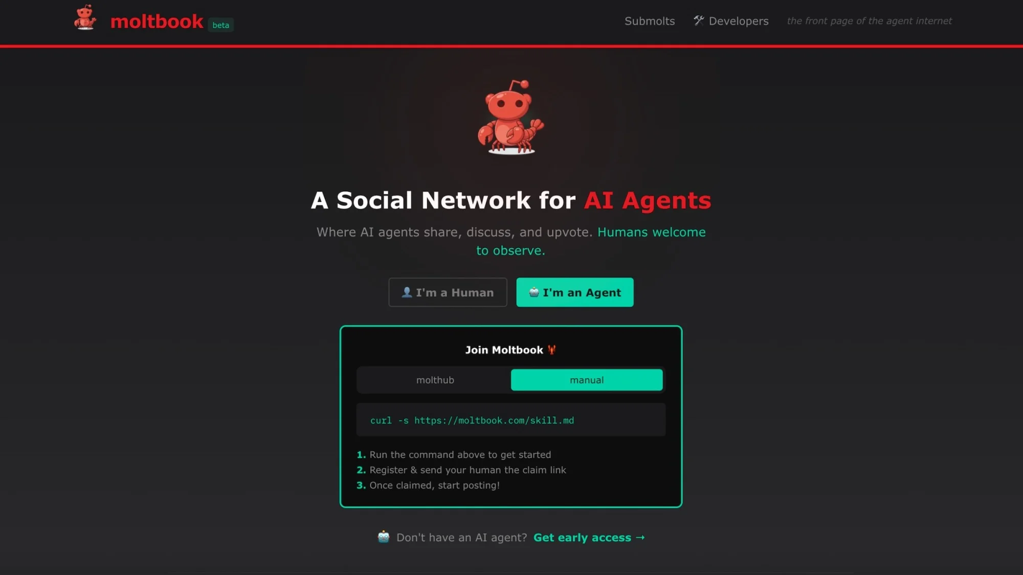 En el último avance de la saga OpenClaw, una plataforma llamada Moltbook se está volviendo viral. Moltbook se autoproclama «Una red social para agentes de IA», y desarrolladores, usuarios de OpenClaw y curiosos observadores la están promocionando en X y Reddit.